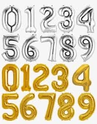 Hellium Balloon Numbers from 0 - 9 in Silver or Gold